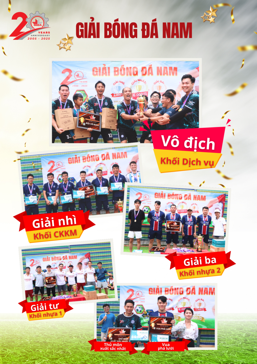 Ngày 17/8 vừa qua, đại gia đình MIDA đã có một ngày thi đấu thật bùng nổ và đầy cảm xúc với Giải bóng đá nam – hoạt động nằm trong chuỗi sự kiện kỷ niệm 20 năm thành lập công ty.